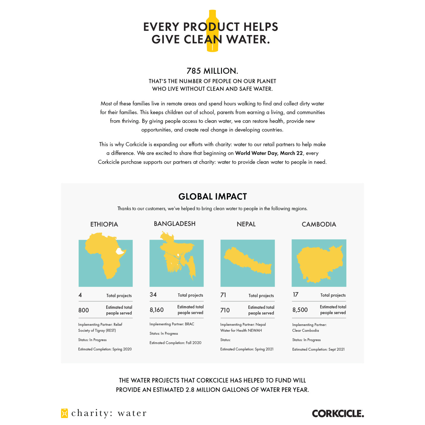 Great for home office or gym use, this new Sport Canteen has a durable finish that's made to last. Every CORKCICLE® purchase helps bring clean water to people in need through Corkcicle’s partnership with charity: water.