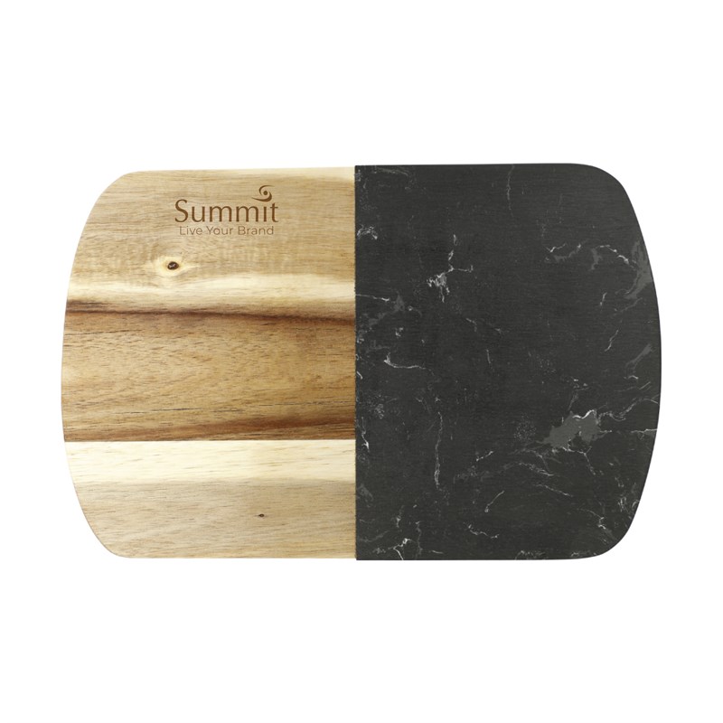 This cheeseboard set is constructed of black marble and acacia wood. Cheese cutting tools easily store in the built in drawer under the cutting board. Please note, due to the nature of the natural material there may be variations in marble pattern and laser engraving. Wood color will have natural variations.