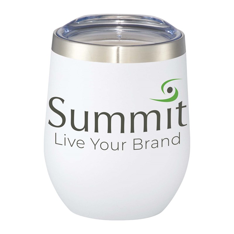 The construction also prevents condensation on the outside of the tumbler. Perfect accessory for wine. Easy sipping, push-on lid. Wide opening for comfortable filling and pouring. Durable powder spray color. 12oz.