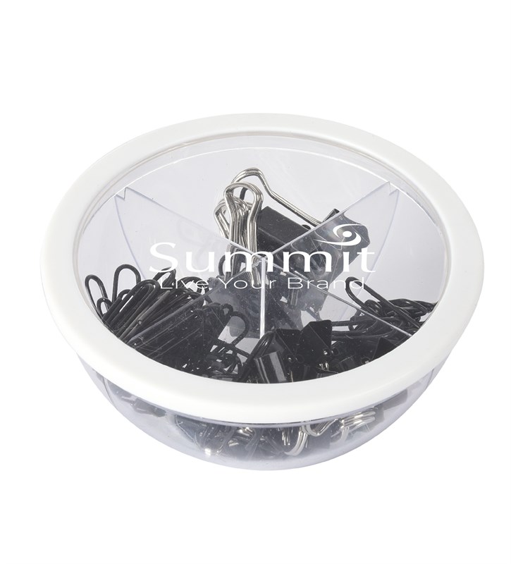 Desk Storage and a phone holder in one! This stationary set includes paper and binder clips and holds a variety of phones for easy viewing.
