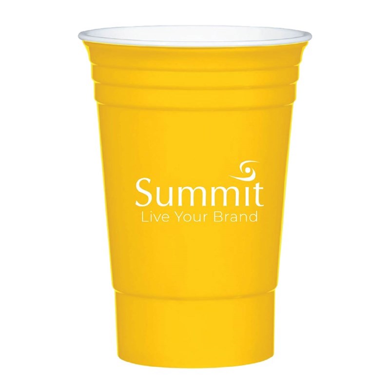 Great for tailgating, trade shows, parties and company outings. This sturdy and reuable party cup hold 16 oz of liquid.